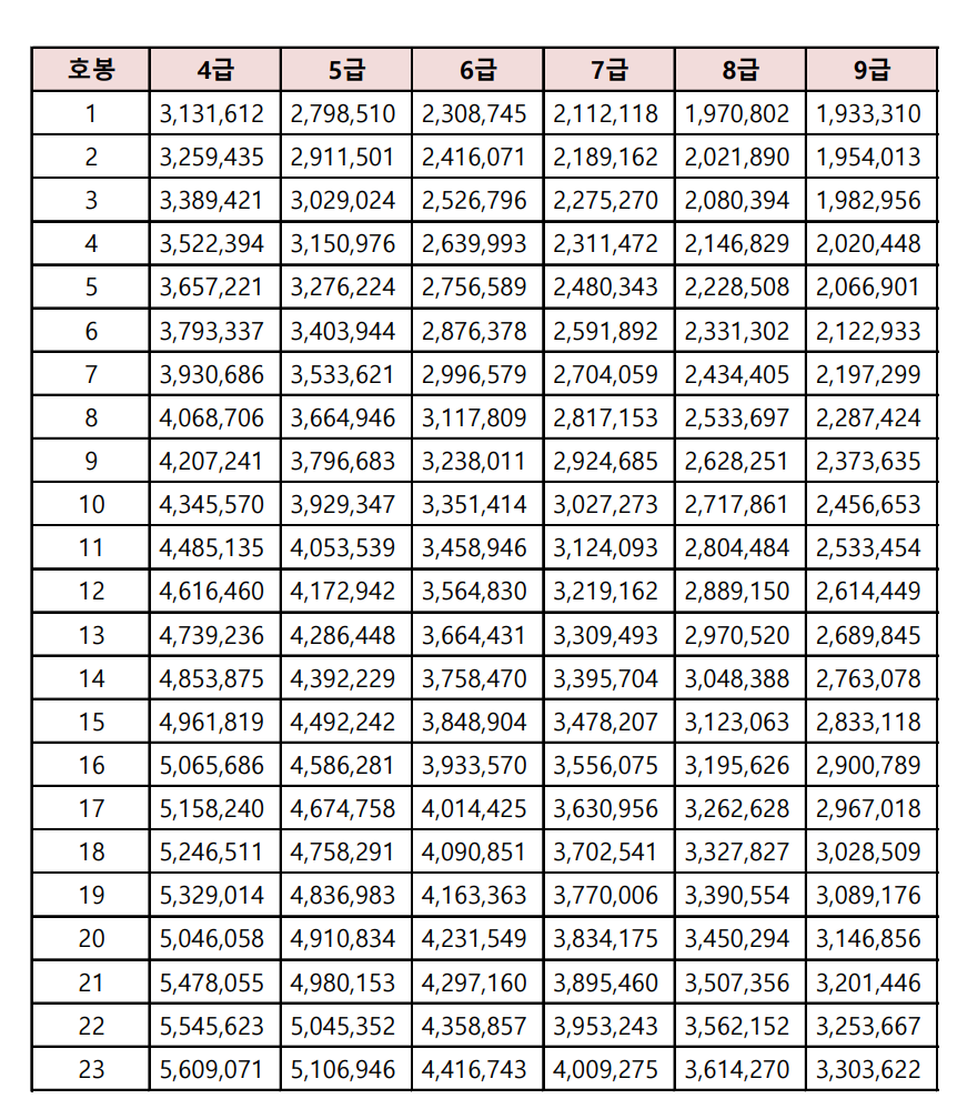 2025 공무원 봉급표