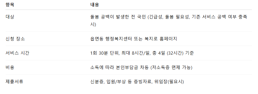 보건복지부가 운영하고, 읍면동 행정복지센터를 통해 신청할 수 있는 이 서비스는