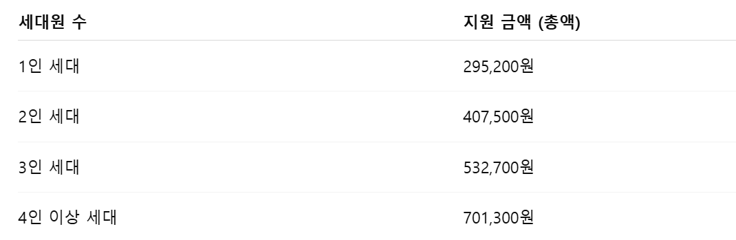 2025년 에너지바우처 지원 금액은 세대원 수에 따라 차등 지급되며, 하절기와 동절기 구분 없이 사용 기간 내 자유롭게 사용할 수 있습니다.